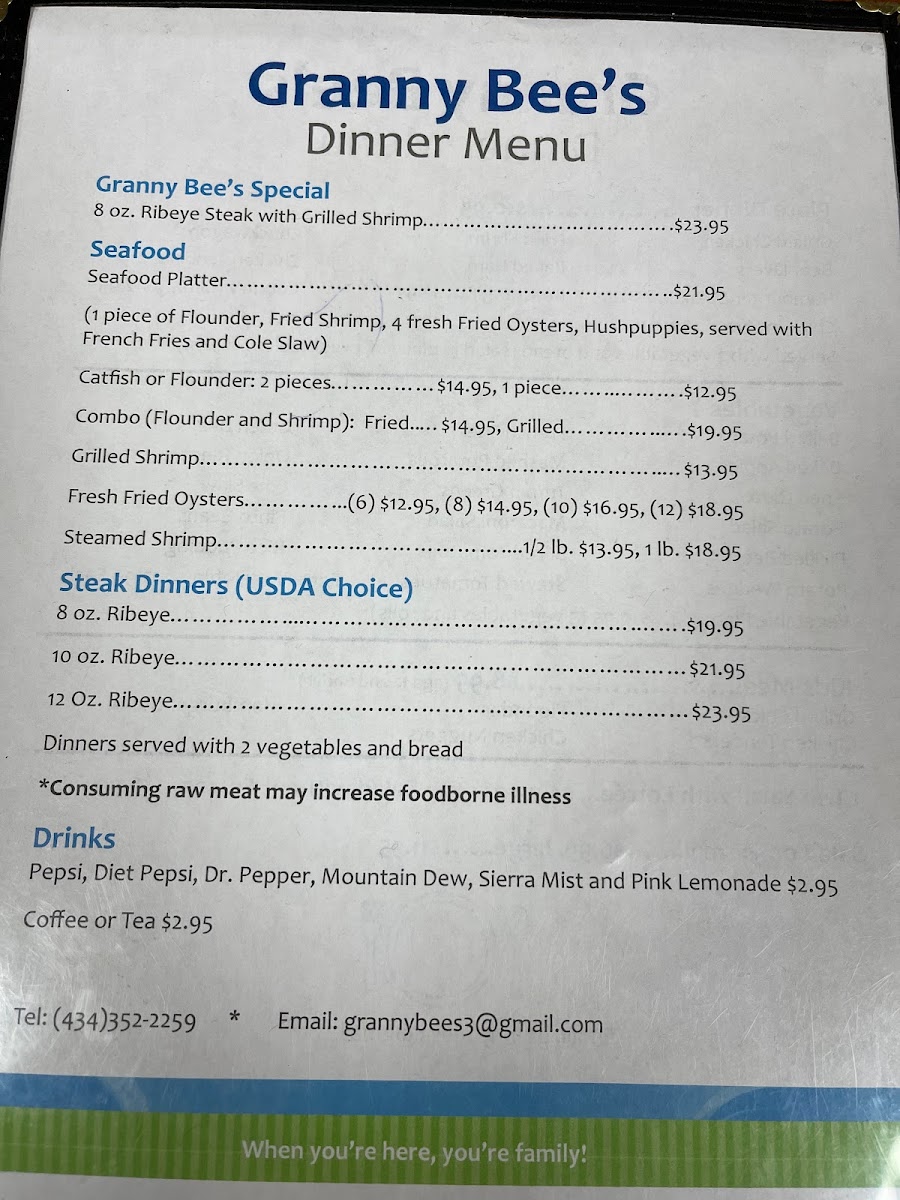 Welcome to Granny Bee's LLC, a charming haven located at 179 Main St, Appomattox, VA. This delightful diner is celebrated for its all-day breakfast service, making it a perfect spot for morning comfort food whenever cravings strike.